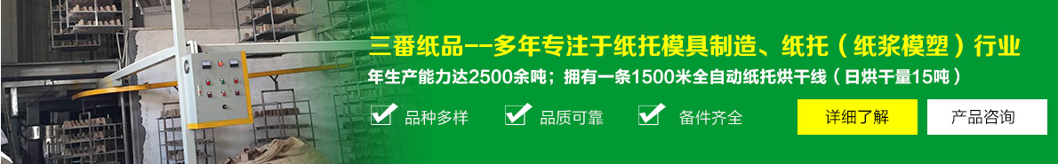 公司擁有一條1500米全自動(dòng)紙托烘干線(日烘干量15噸),完全可以解決急貨問題。紙托適用范圍越來越廣泛,隨著紙漿模塑技術(shù)不斷發(fā)展,現(xiàn)在使用的發(fā)泡膠、EAV、吸塑、卡紙做內(nèi)襯包裝的產(chǎn)品基本都可以用紙托來代替,產(chǎn)品可疊加,極大的縮小了倉儲(chǔ)及貨運(yùn)成本,因材料來源廣泛且價(jià)格相對(duì)穩(wěn)定,故比發(fā)泡膜、EAV、吸塑等石油附屬產(chǎn)品為原料的傳統(tǒng)內(nèi)包裝價(jià)格更低、更穩(wěn)定。